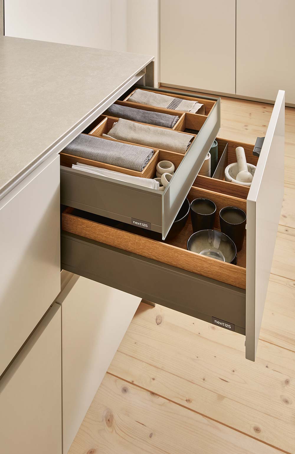 במטבחי next125 החשיבה וההקפדה תתבטא בכל פרט ופרט במטבח, גם כאשר אינו נראה לעין. חיבור מדויק יהיה גם למוצרי החשמל שייבחרו, למשטחי העבודה ולחיפויי הקיר.
